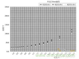 為了使layout設(shè)計更合理和滿足需求,對不同線徑的銅箔進(jìn)行了電流承載能力的測試,用測試結(jié)果作為設(shè)計的參考。