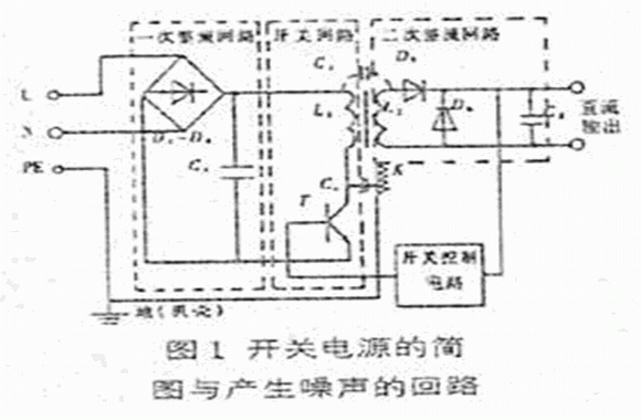 開關(guān)電源利用半導(dǎo)體器件的開和關(guān)工作,并以開和關(guān)的時(shí)間比來(lái)控制輸出電壓的高低,由于其通常工作在20KHz以上的開關(guān)頻率工作,開關(guān)電源內(nèi)的dv/dt、di/dt很大,產(chǎn)生嚴(yán)重的浪涌電壓、浪涌電流和其它各種噪聲。圖1是典型的開關(guān)電源的簡(jiǎn)圖和產(chǎn)生噪聲的回路,含有大量高次諧波的噪聲通過(guò)閉臺(tái)回路向空間輻射電磁能量,即差模電流的輻對(duì)干擾。通常的閉合環(huán)形回路的形狀都是不規(guī)則的,這里我們只討論一般的模型,如圖2所示。