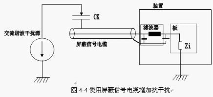 3)、使用屏蔽電纜及合理布線:對(duì)通過(guò)感應(yīng)方式傳播的干擾信號(hào)可通過(guò)下列方式予以消除。