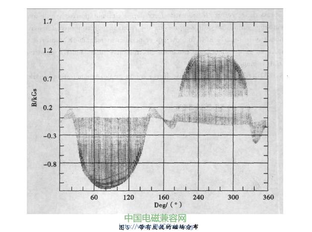 則會(huì)嚴(yán)重影響EMi,且不易被發(fā)現(xiàn)。以圖5為例.兩磁極在靠近中性線的位置處均有與該磁極極性相反的一段反波.仔細(xì)分析借偏的原理可知,該反波事實(shí)上相當(dāng)于一個(gè)與正常換向極作用相反的附加磁極,當(dāng)其被轉(zhuǎn)子換向線圈切割時(shí),產(chǎn)生的電動(dòng)勢(shì)與電抗電動(dòng)勢(shì)同向,也就是會(huì)惡化換向;當(dāng)其分布角度超過(guò)借偏角度時(shí),會(huì)完全抹殺借偏的作用。