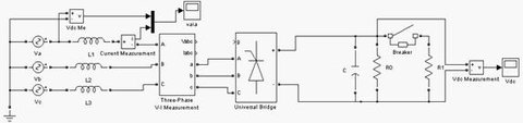 主電路仿真模型如圖2所示。它主要由輸入電源模塊、三相整流器模塊和一些電壓、電流測量單元組成。