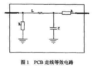 信號完整性主要有反射、振鈴、地彈和串?dāng)_等現(xiàn)象。PCB板上的走線可等效為圖1所示的串聯(lián)和并聯(lián)的電容、電阻和電感結(jié)構(gòu)。串聯(lián)電阻的典型值0.25D./R-4)。55DJft,并聯(lián)電阻阻值通常很高。將寄生電阻、電容和電感加到實際的PCB連線中之后,連線上的最終阻抗稱為特征阻抗zo。