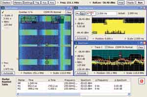 與掃頻技術相比,實時分析技術大大縮短了保證100%瞬態(tài)信號偵聽概率所需的最低信號時長。通過使用擁有DPX頻譜處理技術的實時頻譜分析儀,可以簡便地調(diào)試產(chǎn)生各種瞬態(tài)信號的系統(tǒng),保證在分析過程中不會漏掉瞬態(tài)信號。這縮短了獲得信息的時間,提高了確定被測設備質(zhì)量的信心。