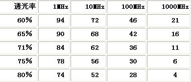 表5 不同透光率導(dǎo)電玻璃的屏蔽效能