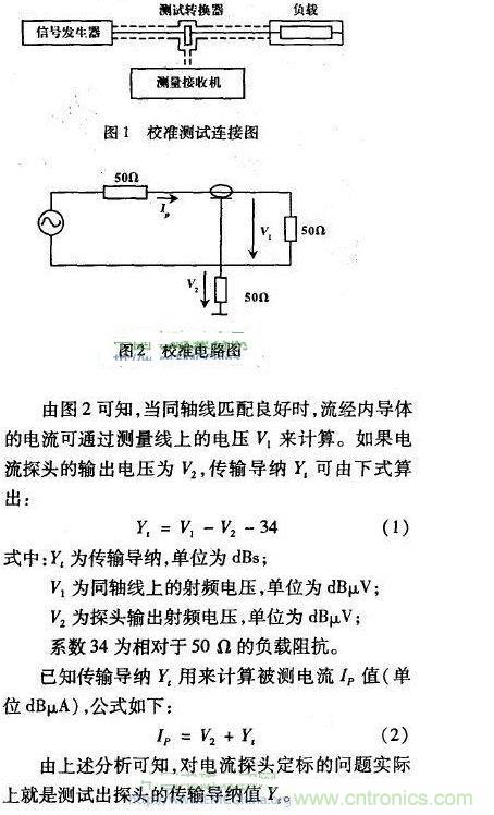 實際的EMI測試時,需要根據(jù)接收機(jī)接收的干擾電壓,折算到被測線路,測試出線路上的干擾電流。因此,對電流探頭進(jìn)行校準(zhǔn),準(zhǔn)確地將探頭的轉(zhuǎn)換因子定標(biāo),成為保證測試準(zhǔn)確度的必要條件。