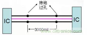 3、時(shí)鐘兩側(cè)建議包地線,包地線每隔3000mil接地,這樣保證包地線上各點(diǎn)電位相等。