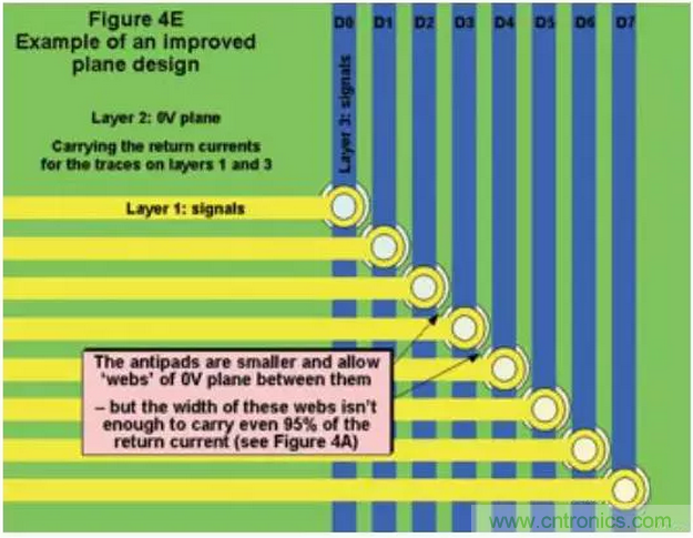 11、關(guān)鍵信號(hào)線走線不要跨分區(qū)走線,如一定要跨分區(qū)走線,則在走線附近采用橋接方式,使信號(hào)形成完整回路。
