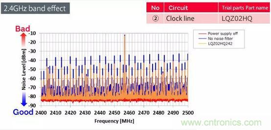 濾波器,旨在消除2.4 GHz頻段的噪聲。第一種類型包括用于電源線的BLF02RD和LQZ02HQ濾波器,第二種類型包括用于時(shí)鐘線的LQZ02HQ系列。