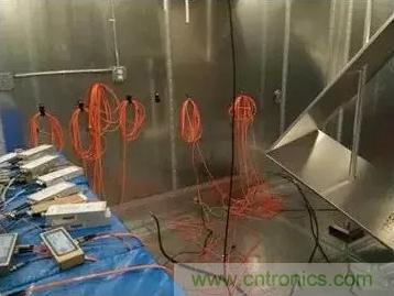 圖2:在EMC干擾室外用于抗干擾數(shù)據(jù)動(dòng)態(tài)分析的示波器陣列
