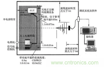 圖4:CISPR25標準要求的輻射發(fā)射測試布置圖