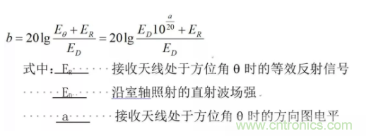 將接收天線(xiàn)轉(zhuǎn)到比最大電平低a(dB)的方位角q時(shí),則所接收的直射信號(hào)Eq=ED10a/20。當(dāng)反射信號(hào)與直射信號(hào)同相時(shí)合成場(chǎng)最大,這時(shí)以b表示: