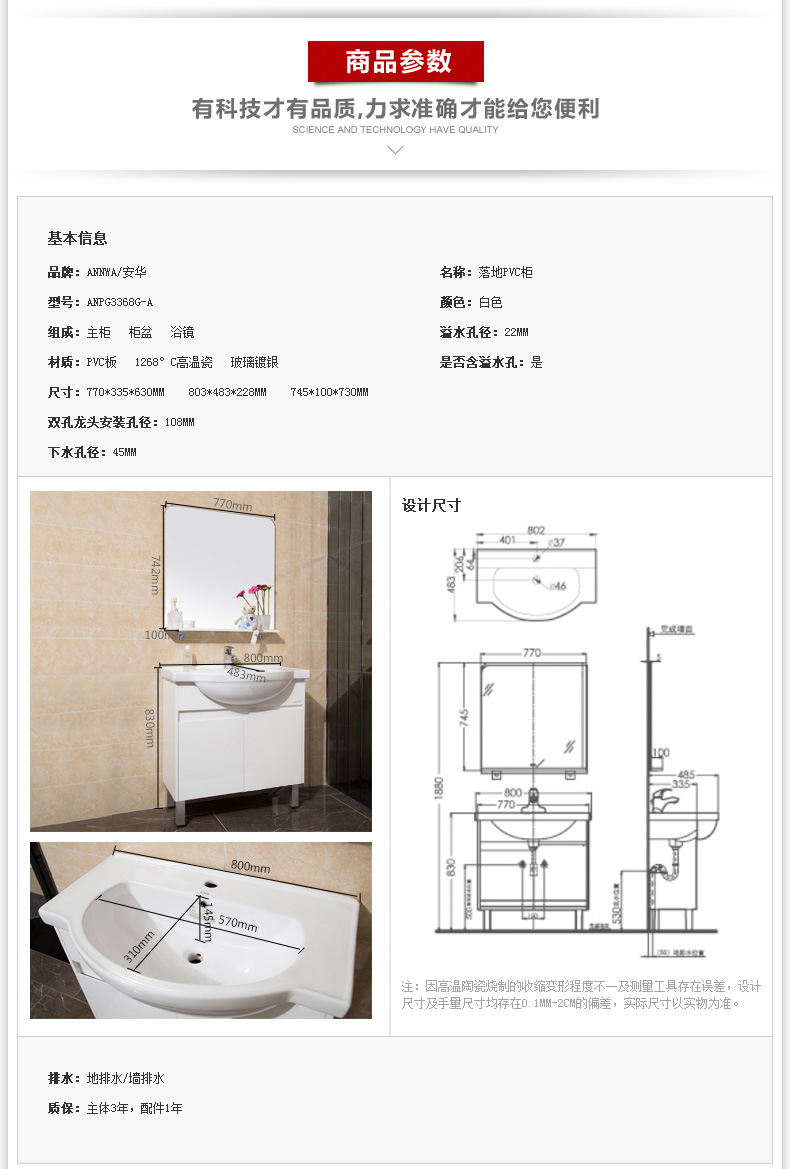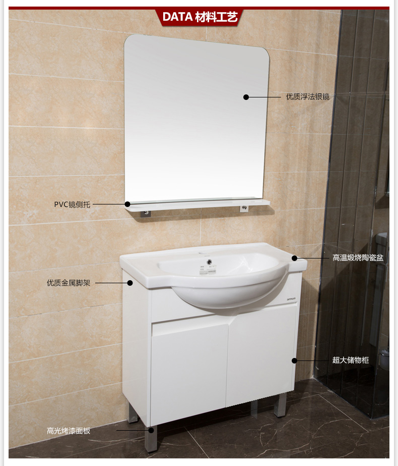 法恩莎(FAENZA)浴室柜組合PVC板洗臉面柜鏡柜落地式衛(wèi)浴柜 編號:ECS001875