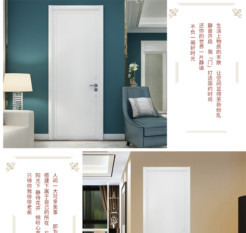 TATA木門 簡約室內(nèi)門臥室門油漆套裝靜音門定制木門豆青色 編號:ECS001882