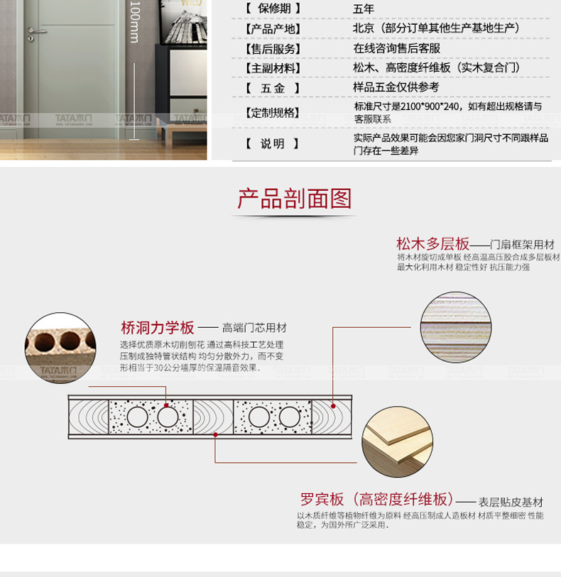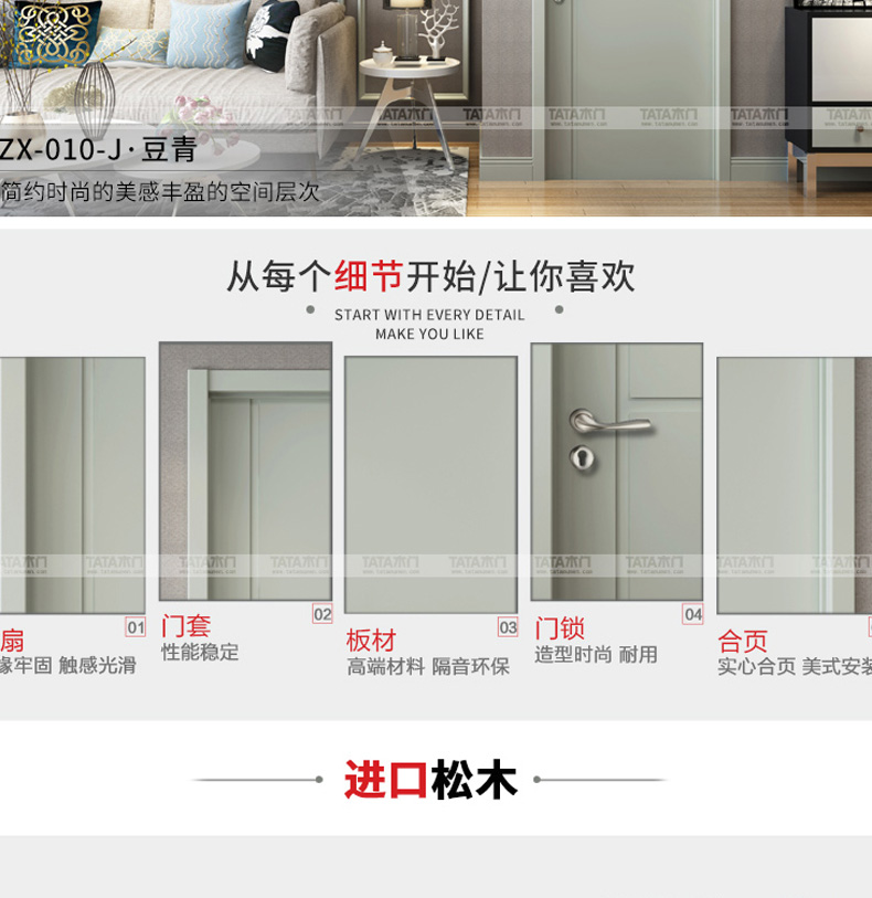 TATA木門 室內(nèi)靜音隔音門實木復(fù)合烤漆門 定制木門白混油 編號:ECS001890