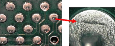 冷焊點出現(xiàn)的原因可能有幾點:例如焊接頭溫度過低、焊劑強(qiáng)度不夠或焊線中焊劑不足。