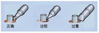 選擇具備足夠熱傳遞能力的焊接頭。針尖頭不可用于所有應(yīng)用中,一些情況下諸如鑿型頭能最佳地傳遞足夠的熱量至被焊接部件。正確的焊接頭選擇標(biāo)準(zhǔn)范例請見下圖表。