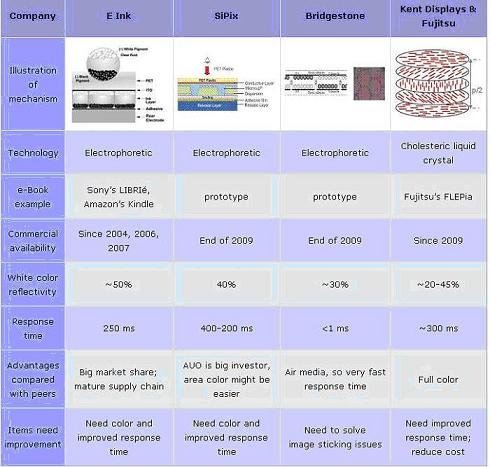圖二 各種E-Book顯示器技術(shù)比較