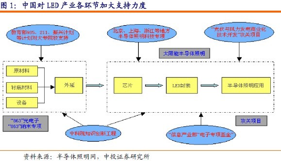 從2005年開始科技部批準(zhǔn)了大連、廈門、上海、南昌、深圳等五個半導(dǎo)體照明產(chǎn)業(yè)基地,之后在2007年和2008年相繼批準(zhǔn)石家莊、揚州等兩個半導(dǎo)體照明產(chǎn)業(yè)基地,在政策、稅收和資金上給予長期支持。