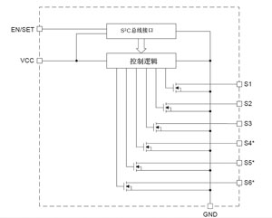 該器件主要特點(diǎn):輸入電壓范圍為1.8~5.5V;內(nèi)部有6個(gè)低端N溝通MOSFET開(kāi)關(guān),每個(gè)開(kāi)關(guān)都是獨(dú)立的;可采用單個(gè)串行控制線(xiàn)(S2C線(xiàn))對(duì)各個(gè)開(kāi)關(guān)實(shí)現(xiàn)通、斷控制;靜態(tài)電流少,典型值為3μA;每個(gè)開(kāi)關(guān)可驅(qū)動(dòng)208mA;無(wú)須其他外圍元件;12引腳TSOP封裝;工作溫度范圍-40~+85℃。