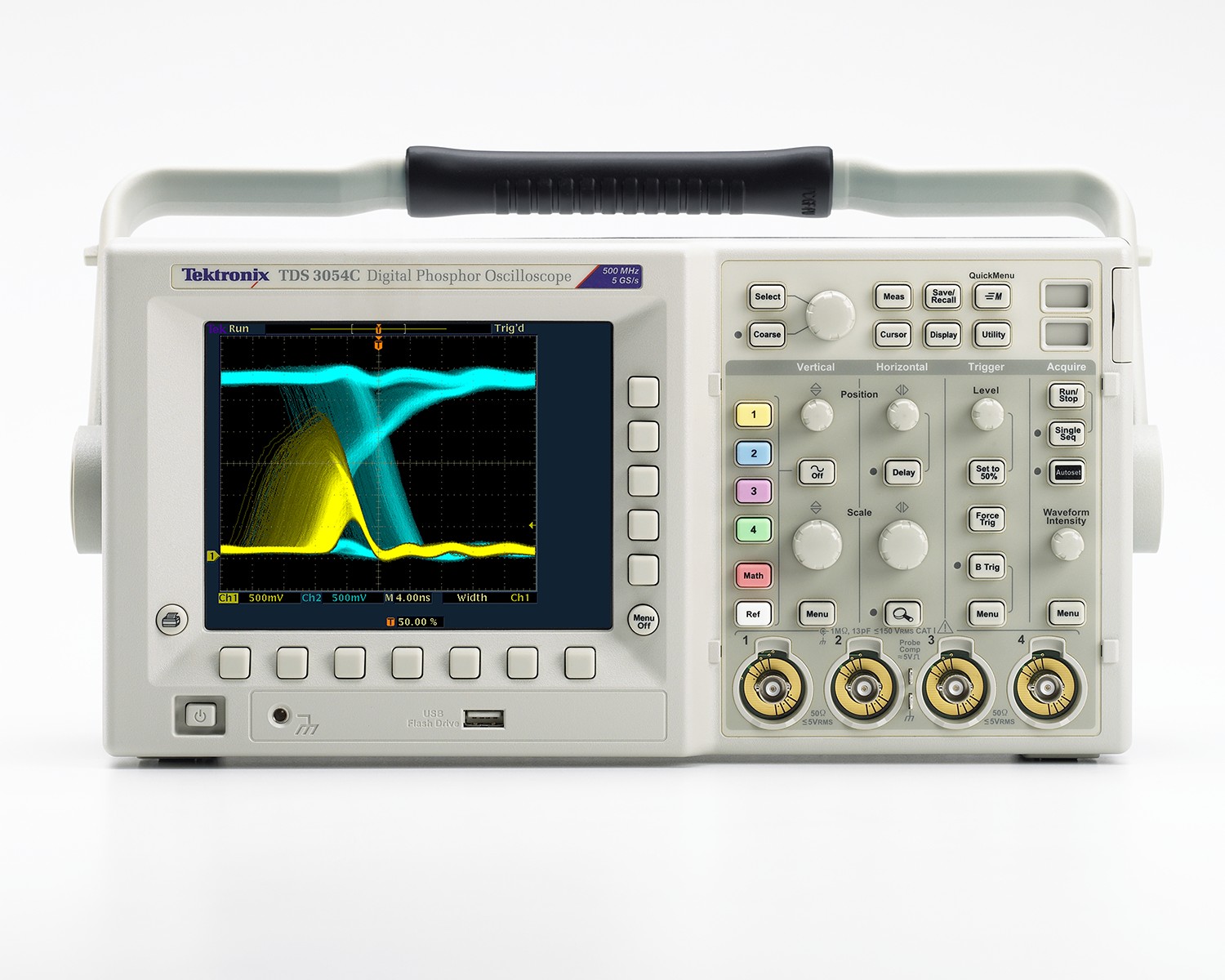 TDS3000C示波器使得包括數(shù)字設(shè)計(jì)人員、制造商、服務(wù)和維修技術(shù)人員在內(nèi)的各類用戶以經(jīng)濟(jì)的價(jià)格獲得DPO的信號(hào)采集和分析功能。DPO技術(shù)每秒采集數(shù)千個(gè)波形,并使用輝度等級(jí)來表明信號(hào)事件的發(fā)生頻率。發(fā)生頻次高的事件亮度要高于偶發(fā)事件,因此可以輕松區(qū)分毛刺、瞬態(tài)信號(hào)和調(diào)制。TDS3000C擁有全分辨率VGA顯示器,所以即使微小的細(xì)節(jié)也能清楚顯示。一旦用戶看到異常信號(hào),他們可以使用高級(jí)毛刺觸發(fā)、欠幅脈沖觸發(fā)、脈沖觸發(fā)或轉(zhuǎn)換速率觸發(fā)功能,簡(jiǎn)便地進(jìn)一步查看信號(hào)。選配的軟件模塊提供了可擴(kuò)充的解決方案,支持極限測(cè)試、高級(jí)通道數(shù)學(xué)運(yùn)算、電信模板測(cè)試和HDTV視頻等應(yīng)用。此外,TDS3000C包括e*Scope內(nèi)置網(wǎng)頁服務(wù)器、WaveAlert異常波形自動(dòng)檢測(cè)軟件和一個(gè)前面板USB端口,可以把數(shù)據(jù)和儀器設(shè)置保存到記憶棒。