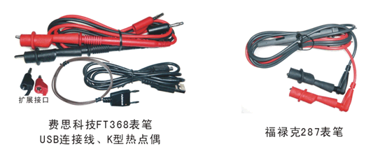 福祿克287的鱷魚夾手感好很多,比對(duì)手檔次高。費(fèi)思FT368的表筆很實(shí)用和高檔,可以在其擴(kuò)展接口上插測(cè)試線。另外費(fèi)思FT368的K型熱點(diǎn)偶很正點(diǎn),價(jià)值不菲。