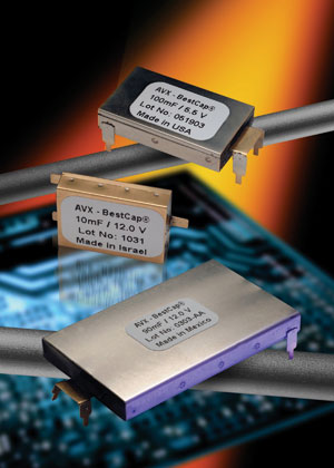 脈沖超級電容器的封裝也在不斷發(fā)展,主要朝向小占板面積和低高度方向。例如,AVX的BestCap®系列超級電容器大約8年前就面市了,包括了具有標(biāo)準(zhǔn)28mm×17mm尺寸和48mm×30mm大尺寸的型號,厚度范圍是2.0mm~6.0mm。目前,已經(jīng)開發(fā)出了小尺寸(20mm×15mm)的型號,更加微小尺寸(15mm×12mm)的型號也正在開發(fā)中(見圖1)。這些超級電容的結(jié)構(gòu)是非常堅固的,具有精密鋼質(zhì)外殼。所有內(nèi)部單元部件都采用環(huán)保材料、無有機溶劑的水溶性材料制造,這些相同的單元部件會構(gòu)成單元陣列。由于采用實體封裝和相同的結(jié)構(gòu),可以承受超過1000g的重力加速度沖擊,而且這些內(nèi)部單元的工作溫度范圍是-40~+75℃。