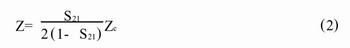 網(wǎng)絡(luò)分析儀測(cè)量并結(jié)合一定的校準(zhǔn)方法(TRL)可算出電容的散射參數(shù)S21o由微波網(wǎng)絡(luò)理論可知: