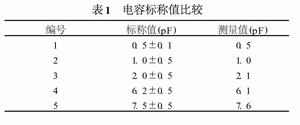現(xiàn)對(duì)5個(gè)標(biāo)稱值已知的片式電容在300M~3000MHz的頻率范圍內(nèi)測(cè)量,所得數(shù)據(jù)與生產(chǎn)廠家給出的電容標(biāo)稱值進(jìn)行比較,如表1所示。