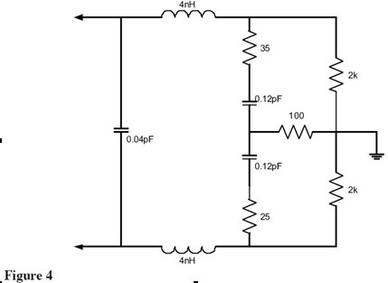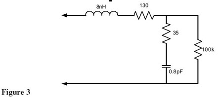 查看Figure 1中的等效電路,可以看到諧振頻率(1/(2*PI*sqrt(LC))給出)點的探頭輸入阻抗是0歐姆——完全消除了被測信號!最近一些制造商開始注意這個問題并設(shè)計具有更好輸入特性的探頭。Figure 3展示了這種探頭(Probe A)的等效電路。這是許多給出這個探頭精確依賴于尖端和地夾的等效負載模型之一。這個探頭還有一個諧振點大概是2GHz,該頻點的阻抗被電阻限制到大約165歐姆。