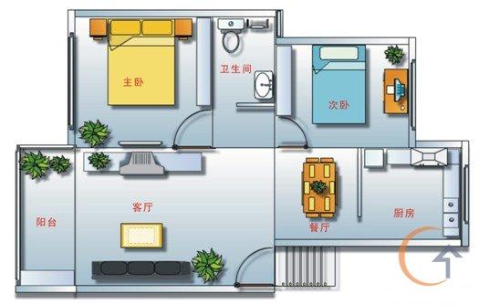 本項目為一套2室2廳,室內建筑格局為:客廳、餐廳、廚房、次臥、主臥、衛(wèi)生間、陽臺,如圖1所示: