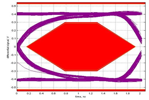 本次測(cè)試將主要驗(yàn)證產(chǎn)品上兩個(gè)USB高速主機(jī)接口的眼圖。對(duì)于USB2.0物理層的眼圖測(cè)試,USB IF在USB2.0 SPEC中有著明確的眼圖模板定義如下: