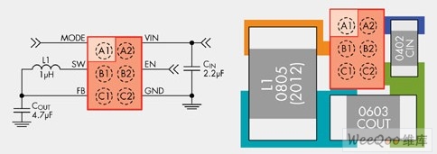 雖然工藝幾何尺寸的進步滿足了對超緊湊型、低價SD存儲器的需求,但這種大容量器件也帶來了功耗問題。利用專門針對這類應用而設計的降壓轉換器FAN5362等產品來替代目前的LDO,可以解決這一難題。圖6是完整的FAN5362功率解決方案的典型原理示意圖和PCB版圖。