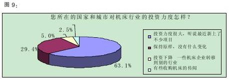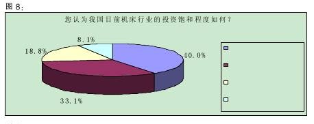 調(diào)查數(shù)據(jù)顯示,40.0%的受訪者認為我國目前機床行業(yè)的投資“大體上飽和,但還有投資空間”,33.1%認為“不飽和,還需要加大投資力度”。(詳見圖8)該結(jié)果表明,三分之一的被訪者認為機床行業(yè)還有投資的空間,加上那些認為投資空間很大的比例,有超過一半的人認為機床行業(yè)還應(yīng)該增加投資,業(yè)界對機床行業(yè)的預(yù)期由此可見一斑。