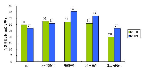 本次調(diào)查的結(jié)果印證了2010年電子行業(yè)所面臨的“缺貨”困境——2010年電子系統(tǒng)制造商與設(shè)計(jì)公司面臨的最普遍的采購風(fēng)險(xiǎn)是無法供貨,43.6%的公司面臨著供應(yīng)商無法供貨的困擾。與2009年的調(diào)查做對(duì)比,2010年IC、分立器件、無源元件、機(jī)電元件、模塊/電池五大類物料價(jià)格有不同幅度增長,其中IC與分立器件漲幅最大,機(jī)電元件、模塊/電池漲幅最??;交貨期方面,IC、分立器件、無源元件交貨期都有所延長,而機(jī)電元件、模塊/電池交貨期分別縮短了5天和6天;貨款結(jié)算期方面,IC、分立器件貨款結(jié)算期均有所延長,無源元件、機(jī)電元件、模塊/電池的貨款結(jié)算期都縮短了。