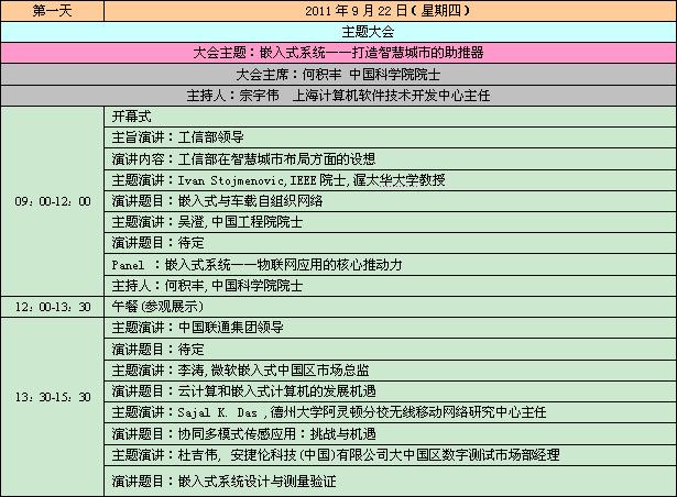 2011中國(guó)國(guó)際嵌入式大會(huì)暨展覽會(huì)日程表