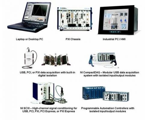 對(duì)于采用通用數(shù)據(jù)采集設(shè)備和外部信號(hào)調(diào)理硬件的測量產(chǎn)品,市場上有數(shù)種配置可供選擇。例如,NI M系列包含多款提供高性能模擬I/O和數(shù)字I/O的非隔離式通用多功能數(shù)據(jù)采集設(shè)備。對(duì)于需要隔離功能的應(yīng)用,您可以使用M系列設(shè)備及配套的外部信號(hào)調(diào)理電路,如NI公司的SCXI模塊或SCC模塊。這些信號(hào)調(diào)理平臺(tái)提供了您為了實(shí)現(xiàn)與載荷測量計(jì)、應(yīng)變計(jì)以及pH傳感器等工業(yè)傳感器直接連接所需的隔離功能和專用信號(hào)調(diào)理功能。