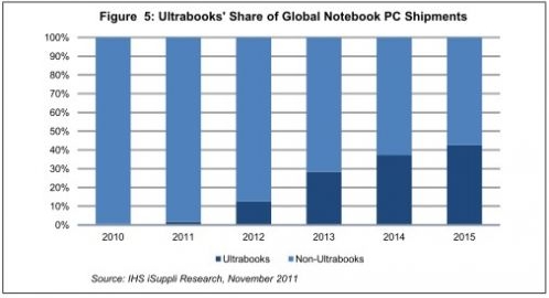 近日消息,據(jù)外媒報道,根據(jù)IHS iSuppli公司計算平臺部門的研究報告顯示,為了抵擋媒體平板日益增強的威脅,移動PC市場正在力推新型超級本平臺,預(yù)計其出貨量到2015年將占到整體筆記本市場的40%以上。