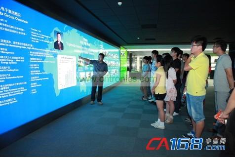 對(duì)臺(tái)達(dá)集團(tuán)有了一定了解之后,南京工程學(xué)院師生一行人來(lái)到大樓的展廳參觀。臺(tái)達(dá)展廳展出了臺(tái)達(dá)在自動(dòng)化、新能源、網(wǎng)絡(luò)動(dòng)力、軌道交通等領(lǐng)域的最新技術(shù)和產(chǎn)品。學(xué)生們對(duì)于這些產(chǎn)品表現(xiàn)出了極大的興趣,他們有的仔細(xì)研讀方案介紹,有些積極提問(wèn),紛紛用自己的方式珍惜這個(gè)難能可貴的參觀學(xué)習(xí)機(jī)會(huì)。