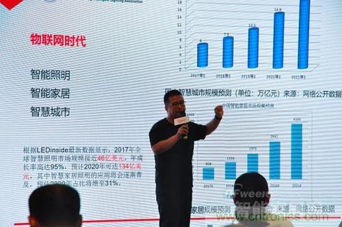 上海浦東智能照明聯(lián)合會(huì)秘書長(zhǎng)代照亮則為現(xiàn)場(chǎng)觀眾帶來(lái)了物聯(lián)網(wǎng)時(shí)代智能照明領(lǐng)域的最新進(jìn)展。根據(jù)最新數(shù)據(jù)顯示,2017年全球智慧照明市場(chǎng)規(guī)模接近46億美元,年成長(zhǎng)率高達(dá)95%,預(yù)計(jì)2020年可達(dá)134億美元,其中智慧家居照明的應(yīng)用將會(huì)逐漸普及,預(yù)估2020年占比將增至31%。