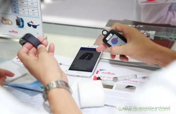 展會期間,村田RFID標簽在珠寶、配飾和可穿戴產品中的應用,引來了不少逛展者駐足觀看。人們驚訝于,村田是如何做到將RFID標簽嵌入在一枚小小戒指上,竟不至于影響產品美觀的。