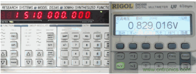 使用七種數(shù)字萬(wàn)用表的交流電壓檔測(cè)量DS345輸出的隨機(jī)噪聲信號(hào)。它們顯示的數(shù)值各不相同,都比1V小,相互之間也差別很大。