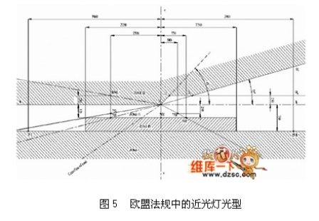 光學(xué)設(shè)計時先考慮法規(guī)需求,討論視角與強(qiáng)度關(guān)系,以近燈為例須針對其特殊的15度揚角設(shè)計,如圖5所示。在傳統(tǒng)的燈具設(shè)計上由先期的利用反射罩配合透鏡刻紋作角度與強(qiáng)度的控制,演變成為利用反射罩直接控制強(qiáng)度角度,也發(fā)展出利用成像方式的魚眼透鏡設(shè)計法。不論何種的設(shè)計方式都須先考慮選用光源的特性,特別是角度與強(qiáng)度的光型輸出(Beam?。穑幔簦簦澹颍睿?,對傳統(tǒng)的光源而言,大多為柱狀光源,可產(chǎn)生類似蝴蝶外型的光型輸出,進(jìn)而發(fā)展出來與之搭配的透鏡、反射罩、擋板、透鏡等光學(xué)組件。而利用LED作為光源設(shè)計燈具時,需重新考慮其光學(xué)特性由傳統(tǒng)的柱狀光源變?yōu)槠矫婀庠矗ú煌姆庋b設(shè)計有不同的光型輸出),進(jìn)而搭配外部的光學(xué)組件而產(chǎn)生不同組合以應(yīng)用于不同產(chǎn)品,依照德國車燈大廠HELLA的設(shè)計分類,可將光源分為八大類,如圖6 所示。LED目前的單位面積發(fā)光量尚不及鹵素?zé)襞菖c放電式燈泡,想得到相同的流明輸出,LED需要較大的封裝面積。隨著光源輸出面積的增加,光學(xué)設(shè)計的難度也隨之提升,所以在現(xiàn)有的概念車上,都以模塊化光學(xué)設(shè)計取代既有的單一燈室設(shè)計,利用多組燈源達(dá)到傳統(tǒng)燈具的照明水平,除了降低光學(xué)設(shè)計的難度,也增加車體造型的設(shè)計感。