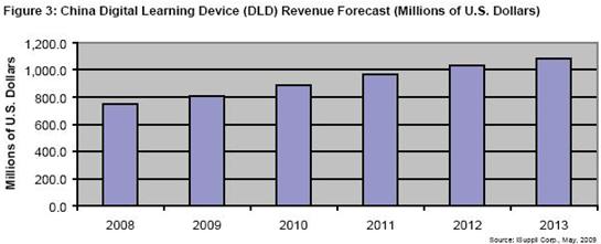 據(jù)iSuppli公司,隨著面向新用戶群的新型產(chǎn)品問(wèn)世,2013年中國(guó)數(shù)碼學(xué)習(xí)設(shè)備(DLD)出貨額將上升到10億美元以上。DLD是提供數(shù)碼學(xué)習(xí)內(nèi)容的電子產(chǎn)品。