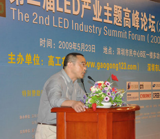 2009年5月23日,由高工在線和深圳市LED產(chǎn)業(yè)聯(lián)合會(huì)共同主辦的第二屆LED產(chǎn)業(yè)主題高峰論壇(2009夏季)在深圳市民中心B區(qū)一樓多功能廳隆重舉辦。來(lái)自香港應(yīng)用科技研究院的蔡振榮博士、清華大學(xué)深圳研究生院副研究員、半導(dǎo)體照明實(shí)驗(yàn)室副主任錢可元教授、康佳光電研究所副所長(zhǎng)馬志凌博士、CREE 中國(guó)區(qū)總經(jīng)理唐國(guó)慶、世紀(jì)晶源研發(fā)中心主任鐘群博士、深圳雷曼光電科技限公司總經(jīng)理李漫鐵、德士達(dá)光電照明科技(深圳)有限公司的總經(jīng)理熊映翔、深圳市華測(cè)檢測(cè)技術(shù)股份有限公司(CTI華測(cè)檢測(cè)機(jī)構(gòu))副總裁/廣州市華德檢測(cè)技術(shù)開(kāi)發(fā)有限公司(DEKRA-CTI華德)總經(jīng)理聶鵬翔、深圳茂碩電源科技股份有限公司的技術(shù)總監(jiān)蘇周等嘉賓就LED芯片、核心器件、顯示、道路照明、路燈標(biāo)準(zhǔn)與關(guān)鍵技術(shù)、LED驅(qū)動(dòng)電源、LED產(chǎn)品檢測(cè)、認(rèn)證和標(biāo)準(zhǔn)化等方面發(fā)表了主題演講。