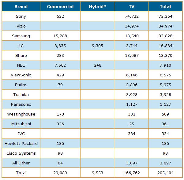 以上主要摘要說明2009年9月份及第3季北美大型商用顯示器市場終端銷售成果,資料主要摘錄自Monthly Large Format Commercial Displays Sell Through Report。