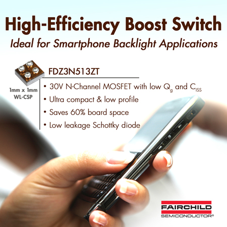 FDZ3N513ZT是升壓轉(zhuǎn)換器中的主要元件,用以驅(qū)動(dòng)串聯(lián)白光LED,為智能電話的顯示屏(以及按鍵,如果有鍵盤(pán)的話)提供照明。
