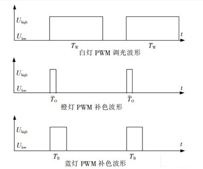 圖2 白燈及補色彩燈的PWM 調(diào)光波形圖。