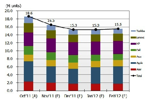 泰國水患造成硬碟機(HDD)短缺,預(yù)計此一供應(yīng)缺口將持續(xù)到2012年第一季,同時影響筆電和桌上型液晶顯示器的生產(chǎn)計劃。 NPD DisplaySearch 特別看到可攜式個人電腦品牌正在減少低利潤產(chǎn)品如小筆電或15.6寸等主流機種;“從2012年第二季初,由于通路需要補回庫存并且展開2012年新機種的上市,可攜式個人電腦的產(chǎn)出將有顯著的增加。”楊靜萍表示。