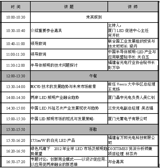 啟動在半導體照明產(chǎn)業(yè)帶來前所未有的發(fā)展機遇的同時,也必將引起相關行業(yè)技術創(chuàng)新、產(chǎn)業(yè)結構、商業(yè)模式發(fā)生變革,進而影響行業(yè)內企業(yè)的生產(chǎn)組織方式、管道建設、營銷手段等進行調整。在這個市場增長加快,產(chǎn)業(yè)整合加劇的情況下,未來五年可能成為半導體照明產(chǎn)業(yè)發(fā)展的最關鍵的時期。企業(yè)應當如何調整戰(zhàn)略布局、產(chǎn)品線結構、技術研發(fā)方向,市場推廣策略?本次活動將廣邀國際及國內LED產(chǎn)業(yè)的知名廠商,舉辦本屆“照明新潮流兩岸LED論壇”,探討兩岸以海西經(jīng)濟區(qū)為平臺,交流切磋、整合資源、形成合力、創(chuàng)新發(fā)展的新思維、新模式。