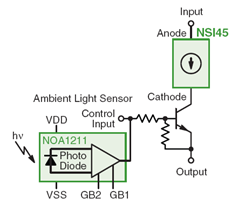 NSI45的另一個(gè)典型應(yīng)用是用作顯示屏和廣告牌文字電路的恒流穩(wěn)流器線性LED驅(qū)動(dòng)器。其特點(diǎn)包括低啟動(dòng)電壓,無論正向電壓(Vf)如何變化都可以實(shí)現(xiàn)精密穩(wěn)流,具有負(fù)溫度系數(shù)特性,可以保護(hù)LED。